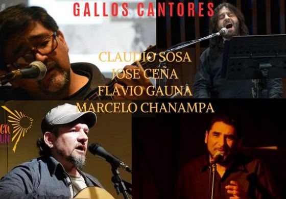El gallo es el símbolo de una actitud de esperanza. Nos enseña a visualizar la oscuridad de la luz y celebrar la oportunidad del nuevo día. Cuatro exponentes de la canción actual, de raíz folklórica, se unen para cantarnos luces y sombras de la realidad y la nostalgia del pasado o del futuro, como decía Tejada Gómez. Con la génesis de distintos puntos cardinales: Claudio Sosa (Tucumán), José Ceña (Buenos Aires) Flavio Gauna (Formosa) y Marcelo Chanampa (La Rioja) se unen en distintos ritmos, voces y un encuentro único para compartir y pasar la noche de la mejor manera hasta que canten otros gallos.