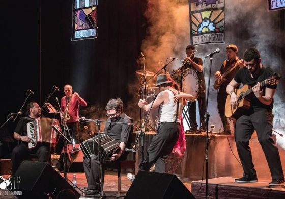 Los Garciarena presentan su "Fiesta Paria"; un espectáculo de murga con impronta carnavalesca y tanguera, bailarines, y una puesta en escena especial que incluye escenografía de vitros con imágenes de Discépolo, Evita y Maradona.