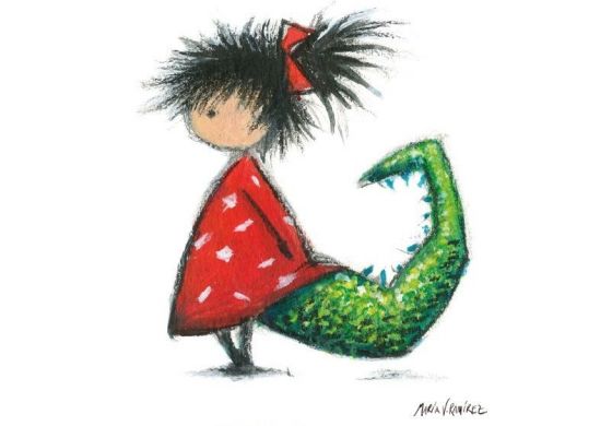 “Monstriña entre libros” está compuesta por más de cincuenta ilustraciones en las que Monstriña domestica a sus propios monstruos y fantasmas, y nos enseña, con la valentía y ternura propia de la infancia, a convivir con ellos, a perderles el miedo, a abrir puertas como libros y animarnos a salir a jugar,